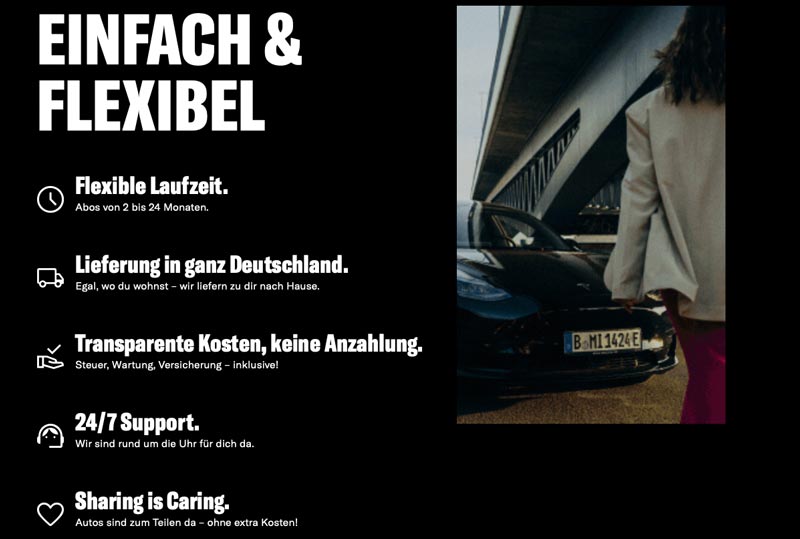Nicht im monatlichen Abo-Preis enthalten sind die Kosten für den Kraftstoff bzw. das Aufladen sowie alle weiteren Betriebsstoffe.